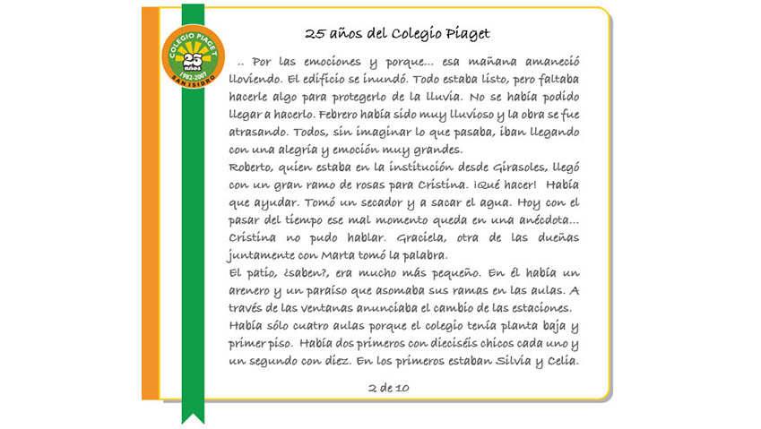 Más adelante, muchos ex alumnos que recorrieron su educación desde Girasoles hasta egresar del Colegio Piaget, comenzaron a volver para acompañar a sus hijos.